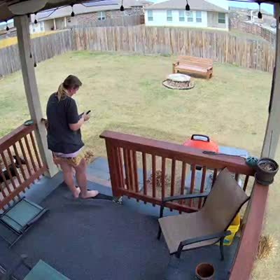 A man sets something in his backyard on fire but the whole gas can catches on fire too. He throws it into the pool but it just sets the pool on fire. Security Footage.