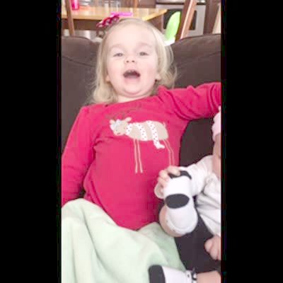A tot boy repeatedly tries to guess what his older sister got for Christmas as she unwraps her gift in a living room.