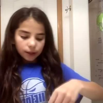 A young girl opens a bag in the bathroom as she starts a beauty tutorial, and the powdered cosmetic gets all over her.