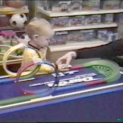 TOT BOY HEAD SPIN Toy Department. Tot / Baby intently watches car toy in toy store. Great face. 1993 SUMMER CONTEST TWO WINNER