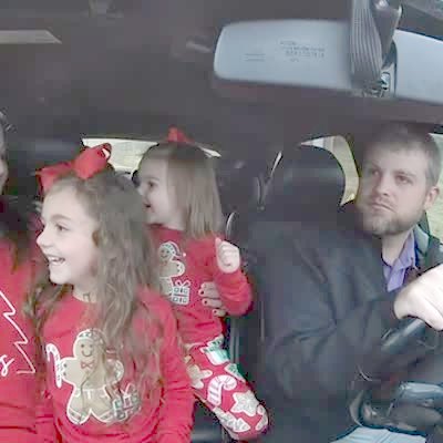 A family, dressed in holiday outfits, goes through a drive-through safari and giggle as they feed the animals. But chaos and tears ensue, when a llama spits the food back at them.