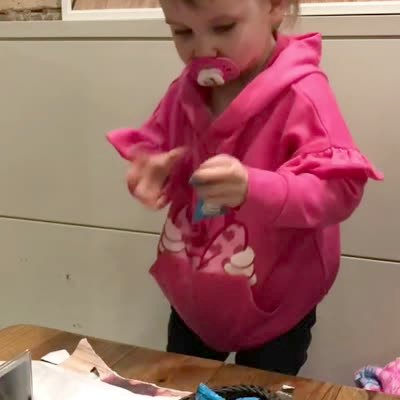 A tot girl at a restaurant repeatedly takes condiment mayonnaise and mustard packets and sticks them down her hoodie sweater jacket.