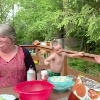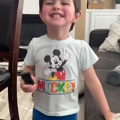 "Surprise, She's Still Alive!" In a kitchen, a young boy makes a thank you video for his aunt who sent him a gift as he asks, "did you send this from heaven?" His mom replies that she lives in New York, as he says, "Oh, you're still alive!"