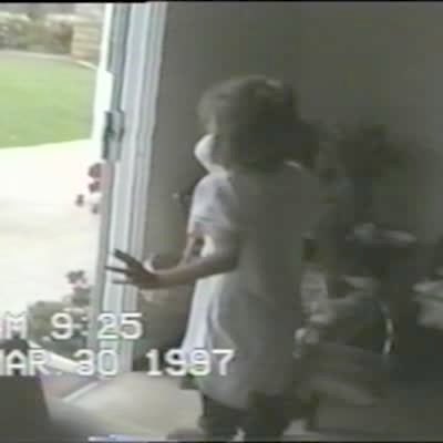 Three young girls get egg yolks all over themselves when their mother tells them to smash "hard-boiled" eggs on their heads in the driveway on Easter.