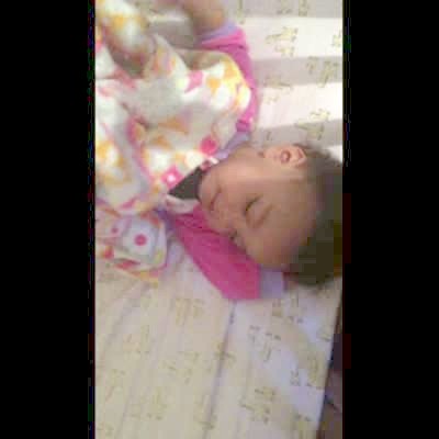 A tot girl whines as she sleeps in a crib and whines as her mom, a woman, tells her to wake up because it is easter. When her mom says there is candy in the easter eggs, the tot girl wakes up.