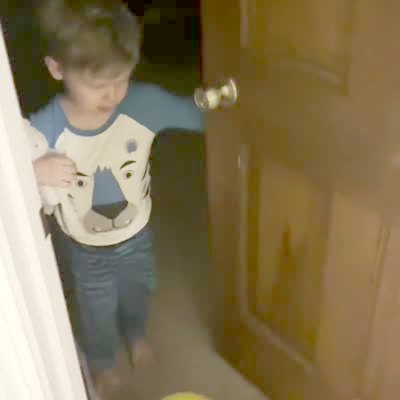 A tot boy is awakened from his room as his parents sing Happy Birthday and throw balloons off-camera, before he slams the door shut, unamused.