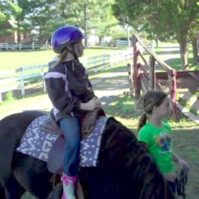 A teen girl at a farm rides on a pony. It runs and the girl hits her head against the stable door and she alls off.
