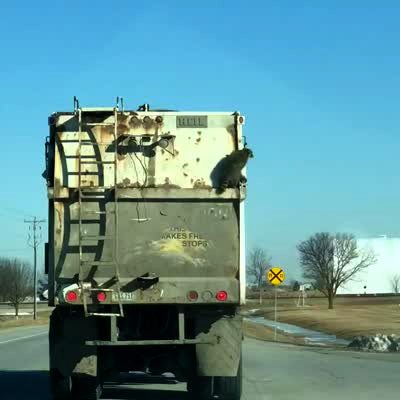 A man tells a hen to get out of the garbage can while she nests on a box, because "those aren't going to hatch." He removes the chicken from the garbage to reveal that she was sitting on lightbulbs.
