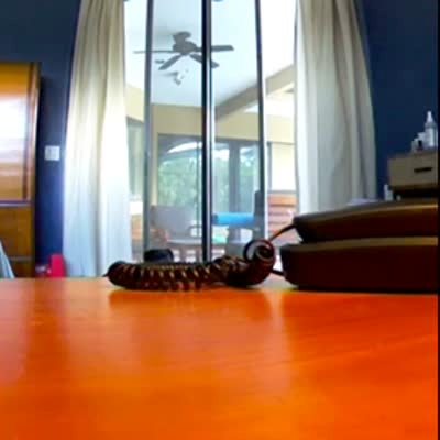 A woman in the kitchen shows her two dogs a video of a lizard on her laptop. The German Shepherd bites the screen and breaks the laptop.