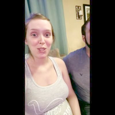 A man and a woman count down to the new year. They kiss at midnight when their German Shepherd jumps into the shot and licks their faces.