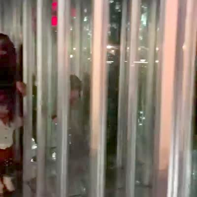 A man tries to ride a hoverboard at the office when he accidentally destroys a pane of glass causing it to shatter dramatically. All talent cleared for the first 34 seconds of the video.