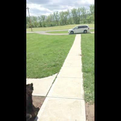 Tot girl drives a green Jeep around the yard with her little brother in the back seat. Boy stands up, girl drives faster, & boy falls out of Jeep. Short tail, no recovery. Boy cries. Power Wheels.