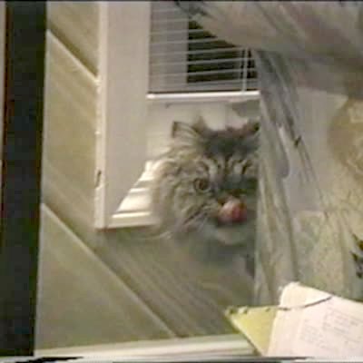 A man with long hair talks to the camera indoors. He says he needs a haircut and his hair slowly disappears. A girl appears behind him, making it clear that the hair belonged to her. Cute. Short tail.