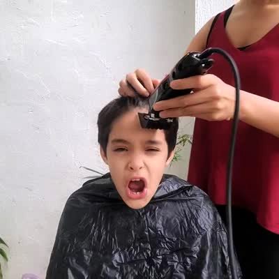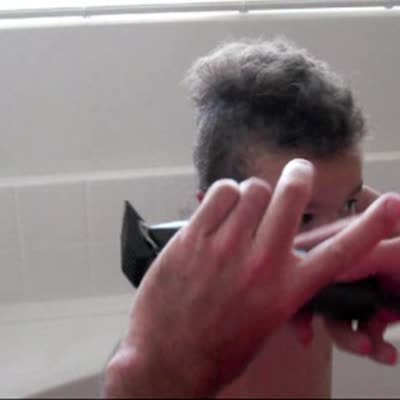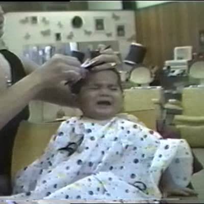 "Worlds Worst Haircut". Attachment to razor falls off and boy's hair is shaved off.