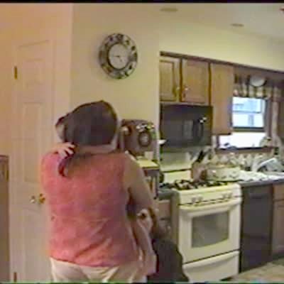 Dad films mom's reaction to coming home & seeing young girl's hair, cut by her brother. Mom is very upset & boy cries. Good reactions.