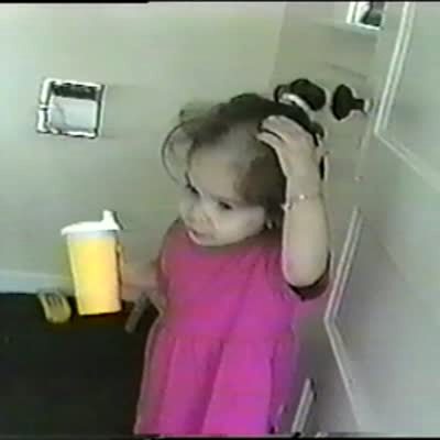 'Reverse Haircut,' Baby starts with short hair- curly wig.