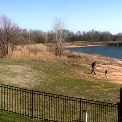 "Pick a Parent Predicament" Two women hold hands with a tot boy on a driveway, then they let go of the tot boy's hands and run in opposite directions, expecting the boy to run after one of them. Instead of going after either of the women, the tot boy runs straight ahead, takes the camera and runs away with it.