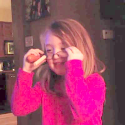 A girl sings in the living room and is hit in the glasses with a Nerf dart Action at :47