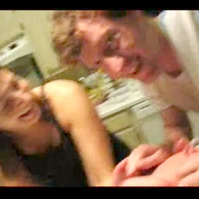 Everytime a man lying in bed gives his newborn daughter a kiss on the face, she goes to the bathroom loudly. His wife behind the camera laughs and keeps encouraging him to kiss her again.