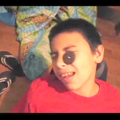 Boy plays cookie game while sitting in chair in bedroom. Move a cookie from your forehead to your mouth without using your hands by making silly faces.