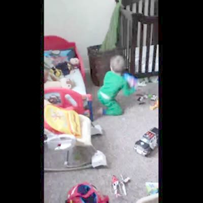 A young girl opens up a pantry to get some Oreo cookies when she notices the security camera her mom set up. She sings, "Mommy, go away," several times and turns it around. She's startled when her mom speaks over the camera to get out of the cabinet, as she sweetly waves and says, "Hi mommy!" Security footage.
