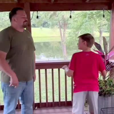 A man and a young boy perform the tortilla challenge, but at :31, the boy punches the man in the face.