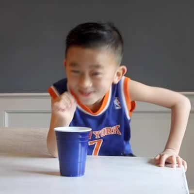 A young boy bounces a ping pong ball on a table and it bounces into a cup. Then he performs a series of ping pong tricks that increase in difficulty.