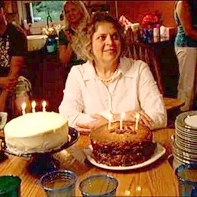 A woman rubs pie in her teen daughter's face after she blows out her birthday candles.