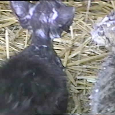 Two women sit together. Hair covers both of their heads. A third woman, obscured from view, stands up, and walks away, and she takes the hair with her.