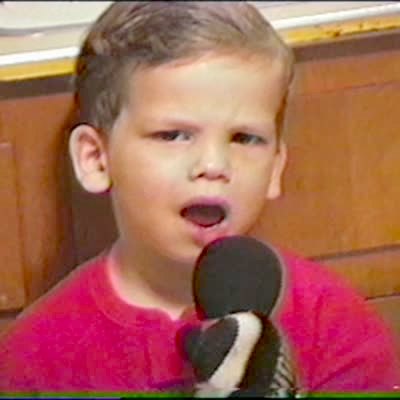 Little boy in red tortures Star Spangled Banner. Bad singing.