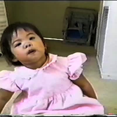 A tot girl makes dog and cat sounds when her aunt asks what they say, and then her aunt asks what Michael Jackson says and the girl says "hee hee."