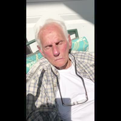 A senior man slaps his face on the patio while a man tickles it with a paper straw wrapper as he sleeps.