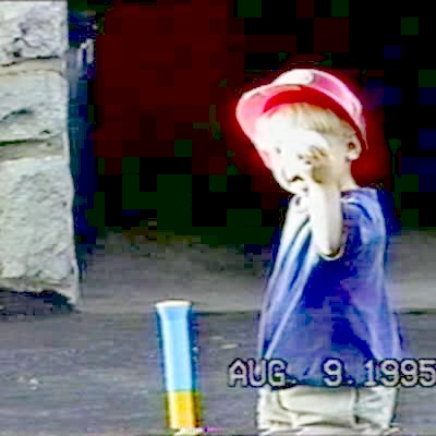 A young boy plays with a squishy ball and it explodes all over him and the living room.