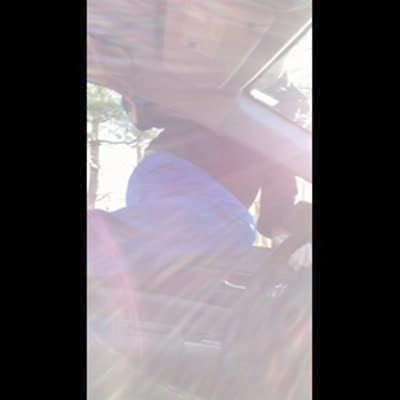An adult man has to climb through the window of his car because he has tied the door shut while attaching the Christmas tree to the rook of the car.