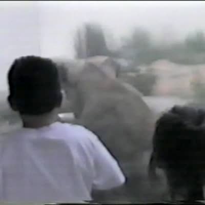 A young boy with boxing gloves pretends to do a training montage in the living room while "Eye of the Tiger" plays. He punches the bag, but slips and falls. Music rights not cleared.