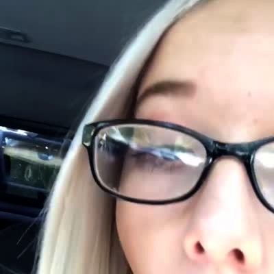 A teen girl in a car laughs as she watches milk pour out of a semi truck that transports ice cream.