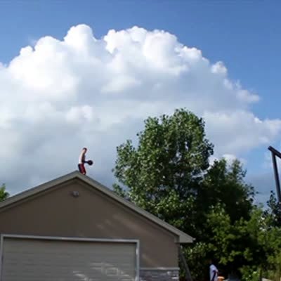 Two men attempt to do cartwheels in a parking lot while they're drunk when one crashes into a parked truck and dents it.