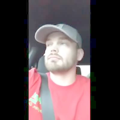A man films himself in his car as he listens to "Old Town Road" on the radio. He reveals a horse in the back of his truck. Music rights not cleared.