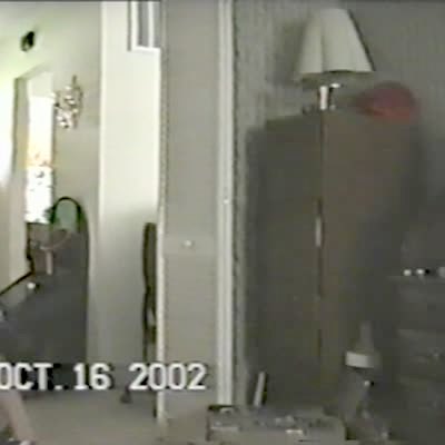 An alarm goes off and a teen boy runs through the house with his pants around his ankles to turn it off then hops away. Nest home security footage.