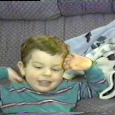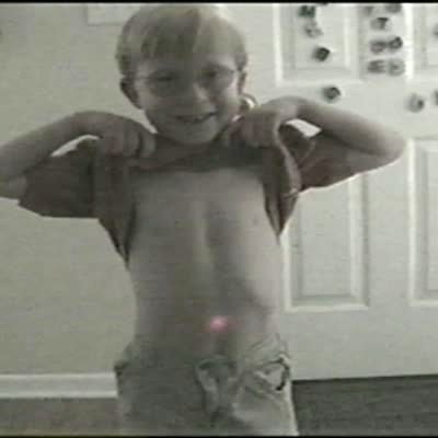 "Light Lunch" Young boy swallowed a flashing light. See it blinking red through his stomach / skin. Older brother dances in his underwear in background. Weird, Odd. Diode