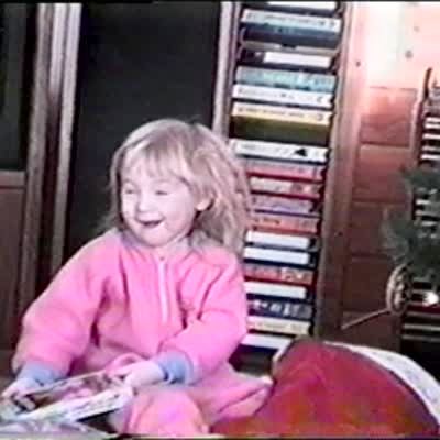 Tot girl gets X-mas gift, looks annoyed, and then says, "I didn't ask for socks!" Christmas