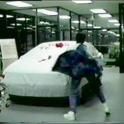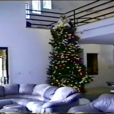 X-mas; AA: Christmas Hidden Camera. Man sneaks in to open present, hidden camera catches him, he falls. (SET-UP)