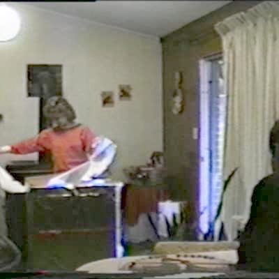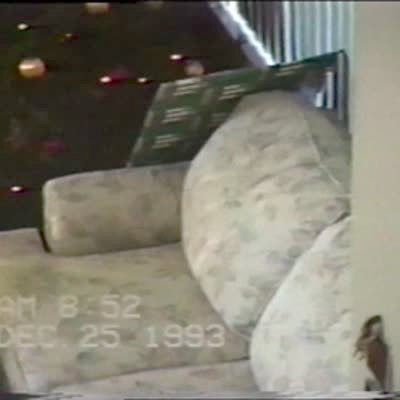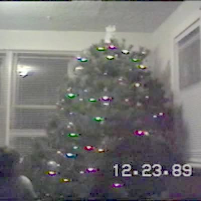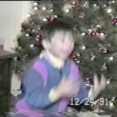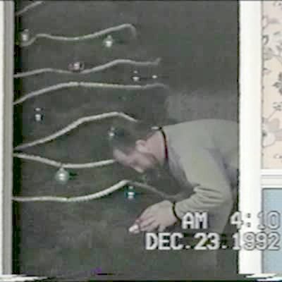 X-mas. Dad falls down stairs videotaping kids opening gifts.