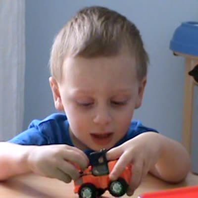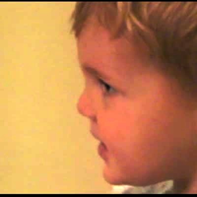 A tot boy recites his ABC's, but says AFV instead of TUV and ABC.