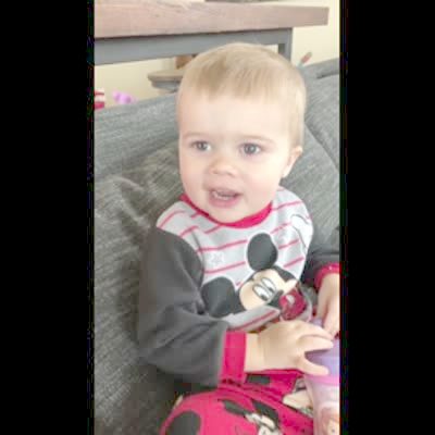A woman asks a tot girl to sing her ABC's and instead she sings "no" repeatedly in the tune of the ABC song in a living room.