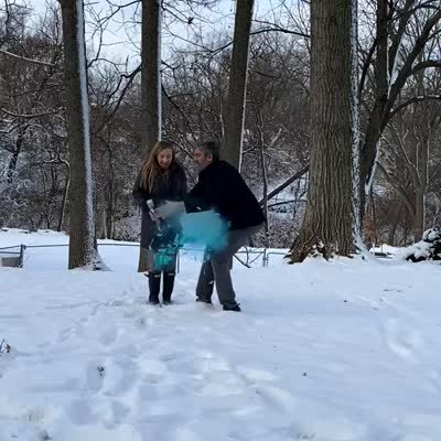 A woman wears virtual reality goggles while the person holding the camera sprays her crotch from across the room with a water bottle. Eventually the woman touches her pants and, feeling the wet fabric, believes that she accidentally urinated on herself.