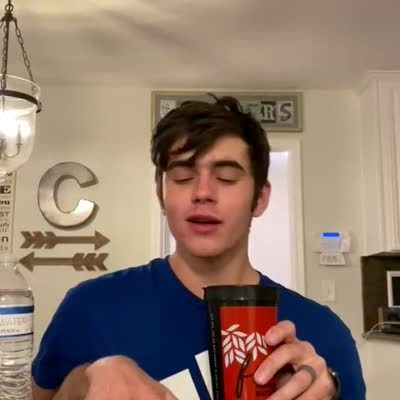 A teen boy and a man do the Not My Hands Challenge, and the teen boy eats ice that the hands grab.