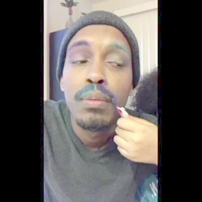 Young girl puts makeup, lipstick and wig on her dad whos back is to the camera. Good reveal. #AFVDad musical.ly AA