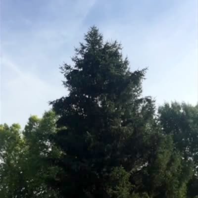 A senior man throws a paper airplane from his driveway, then laughs when it lands in a recycle bin at the end of the driveway. Security footage.