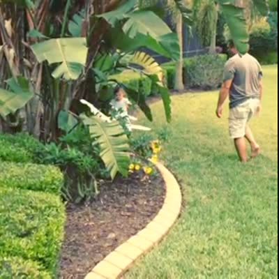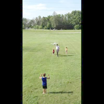 Boy flies remote control plane right into dad's arm. Good hit, no tail